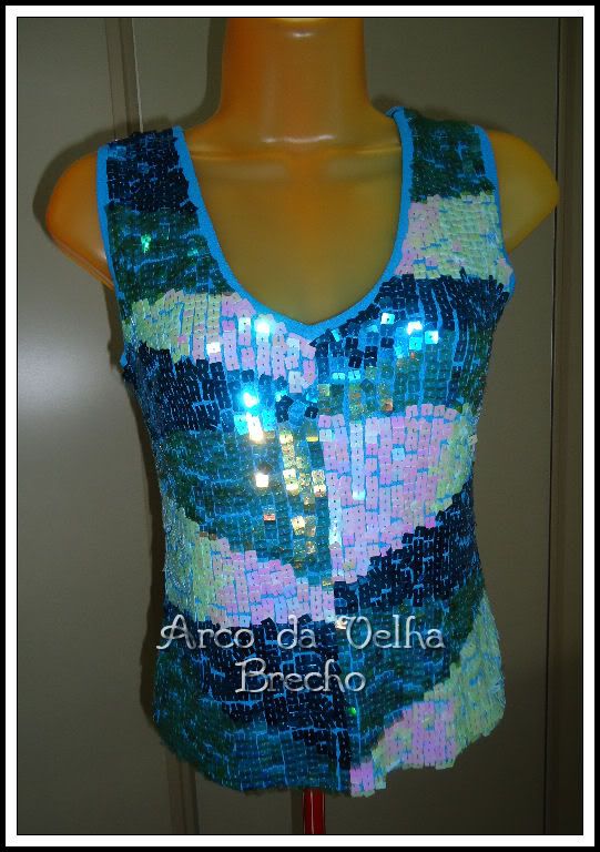 Cor: Blusa de linha azul com lantejoulas tricolor